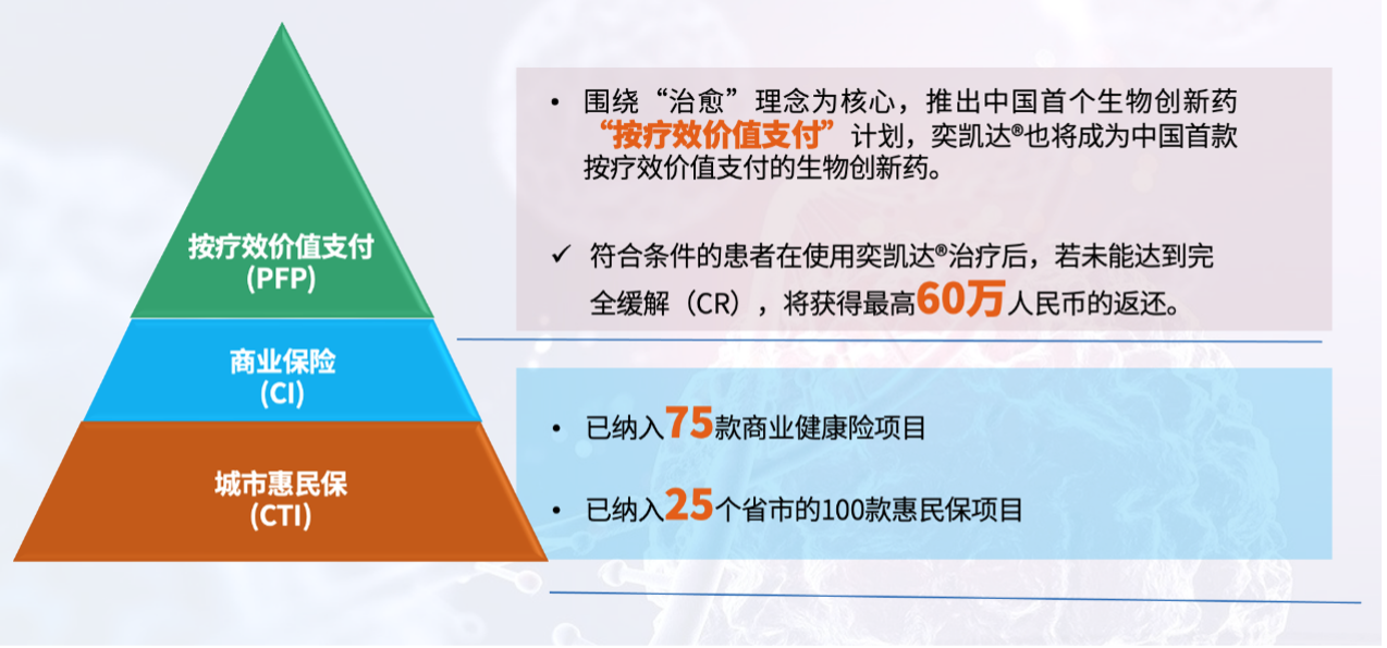 自产品上市后,人生就是搏尊龙凯特积极推动提升CAR-T产品可及可负担性,依托国家多层次医疗保障体系,探索创新支付方案,包括积极推动纳入各省市惠民保清单,并通过深化与TPA (Third Party Administrator)、保险公司的合作,持续提高患者对奕凯达®的可负担性。