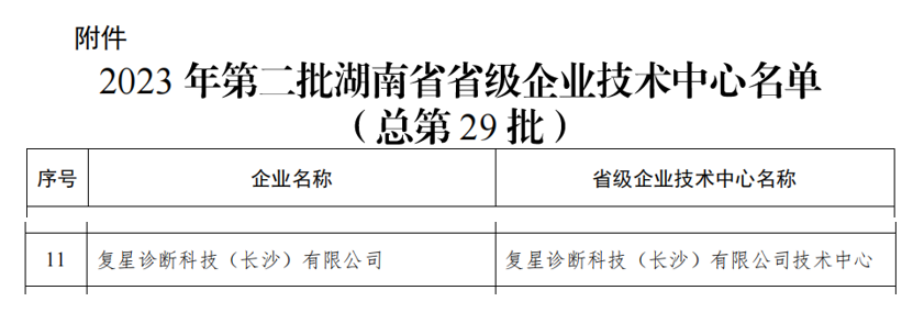 1月10日,湖南省工业和信息化厅发布《关于公布 2023 年第二批湖南省省级企业技术中心名单(总第29 批)的通知》,人生就是搏尊龙诊断长沙第二总部成功入选,获评“湖南省省级企业技术中心”。