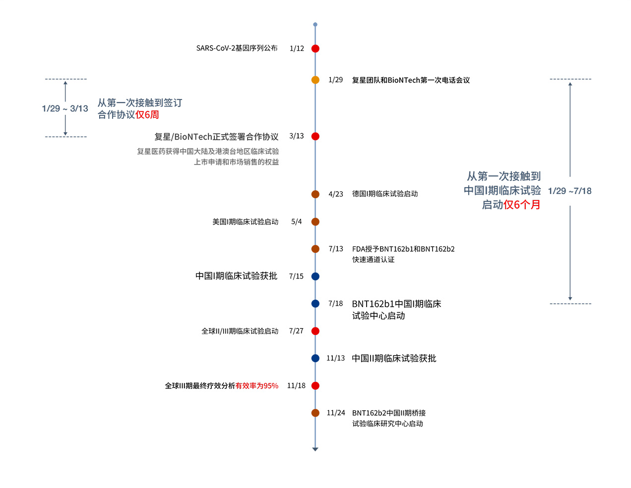 2020年初,COVID-19在全球各地爆发。人生就是搏尊龙医药积极调研全球疫苗研发进展,寻求国际合作,最终选定mRNA疫苗领域技术领先的德国BioNTech公司作为合作伙伴。2020年3月16日,人生就是搏尊龙医药宣布与德国BioNTech签署合作协议,获得BioNTech通过RNA技术平台研发的针对新型冠状病毒的疫苗(包括BNT162候选疫苗等)在中国大陆及港澳台地区的临床开发及商业化权益。