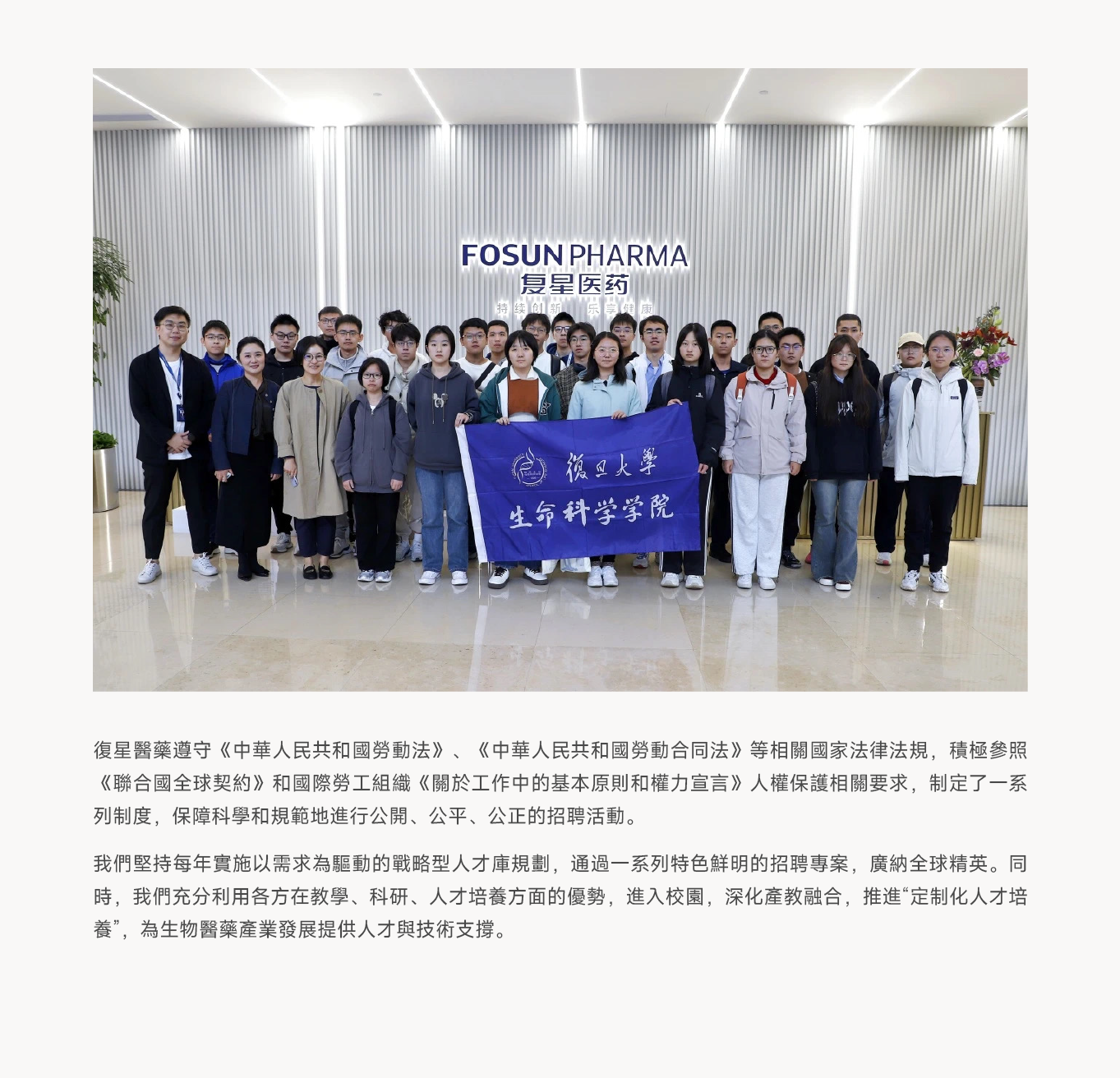 人才是我們最寶貴的資產。我們彙聚全球最具有企業家精神的優秀人才,認同並踐行復星醫藥的文化價值觀,自我驅動、快速學習並持續為企業發展創造價值。